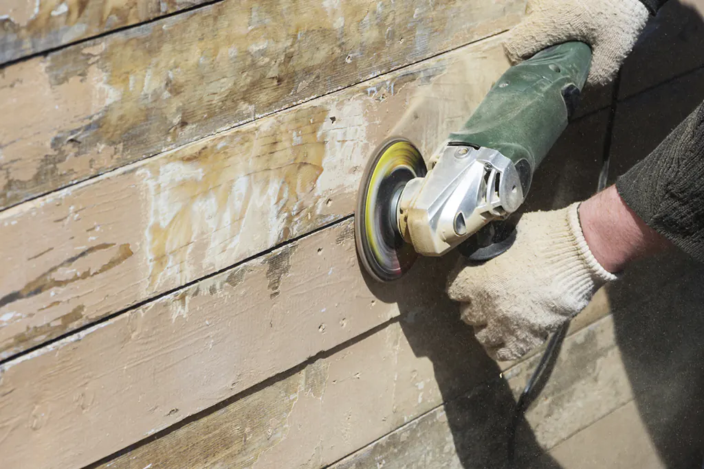 Next, we sand and scrape all surfaces, burning off any flaking, blistering, or bubbling paint.